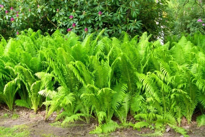 Они очень хорошо сочетаются с другими растениями с декоративной листвой. Можно посадить папоротники на краю бассейна, пруда, поскольку они подходят для влажной и даже переувлажненной местности. Для таких мест можно выбрать Чистоуст величавый или страусник, которые можно сажать вместе с болотным ирисом или первоцветом Буллея.