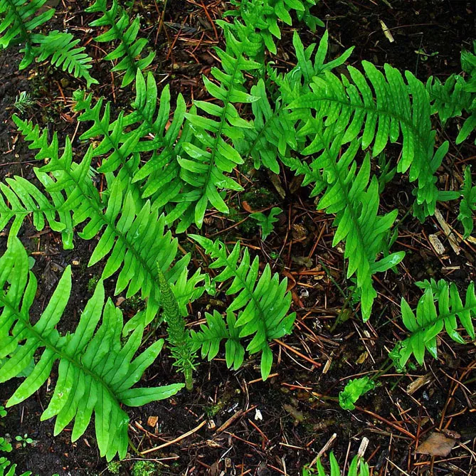 Дербянка колосистая (лат. Blechnum spicant) – многолетник с линейными листьями достигает 40 см. Предпочитает кислый грунт и темные леса, боится известняковых почв!