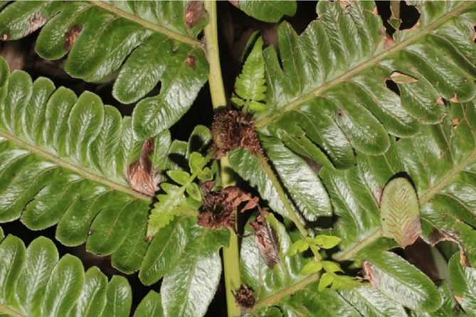 Когда споры падают на землю, они прорастают, производя заростки – крошечные, похожие на мох организмы, которые несут половые органы. После оплодотворения из этих заростков вырастут новые растения.