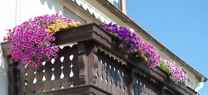 Балконные петунии обычно располагаются на высоте – на балюстраде, на высокой клумбе или в подвесной корзине. Так подчеркивается их вьющийся характер, каскадные сорта могут создавать шторы из разноцветных цветов. Сурфинии предпочитают направление роста в соответствии с силой тяжести. Сорта петунии с маленькими цветами могут расти на слегка затененных балконах.