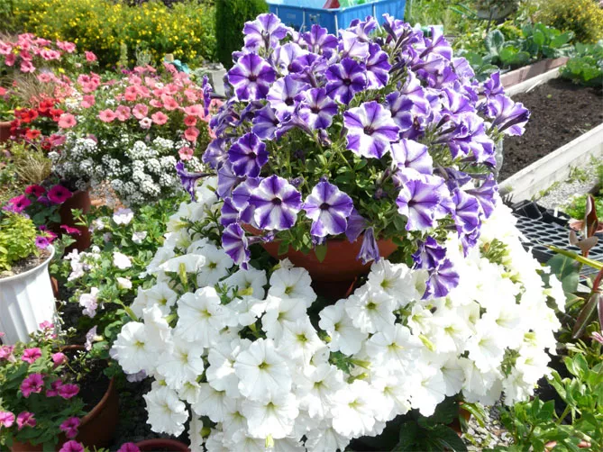 - желательно сажать петунии в белые ящики – темные притягивают тепло, корни перегреваются.
