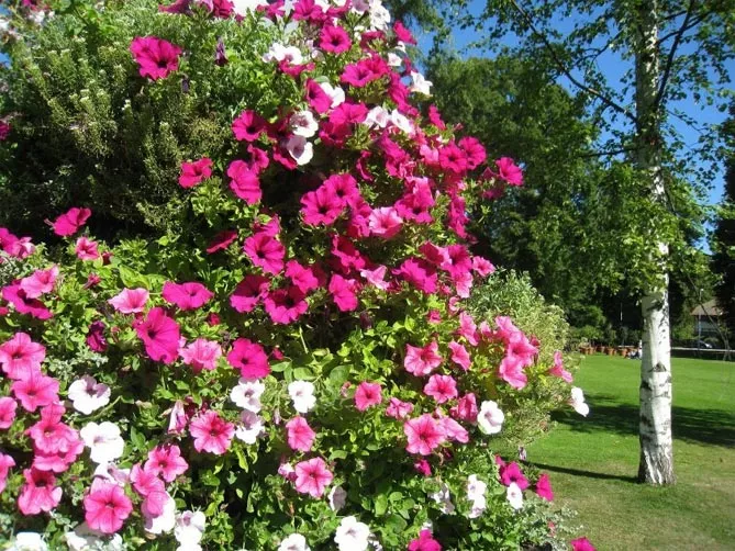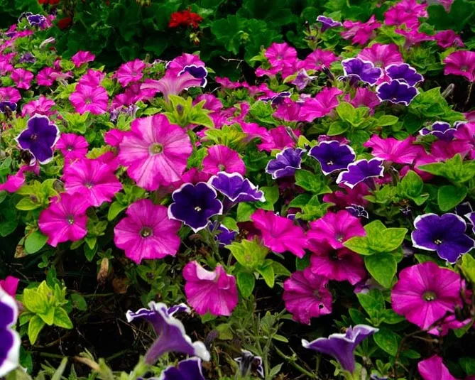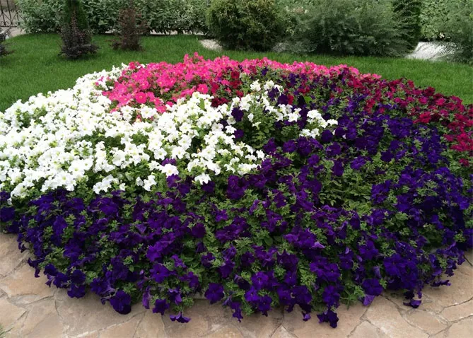 Посаженные на рабатках петунии превращаются в привлекательный почвенный покров, создавая ковры, красиво смотрящиеся возле бордюра или газона. Скорость их роста позволяет быстро украсить каждую рабатку, даже с учетом необходимости ежегодного обновления растений.