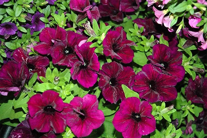 С тех пор история выращивания петунии существенно ускоряется – заинтригованные садоводы создают новые сорта с розовыми, бордовыми, красными, фиолетовыми, синими, белыми, желтыми чашеобразными цветами, а также двухцветными лепестками, пятнистыми и окрашенными прожилками. Сегодня петуния включает около 40 видов из семейства пасленовых. Растущее значение как декоративного растения в первую очередь имеет садовый гибрид, известный как садовая или обыкновенная петуния (Petunia × hybrida).