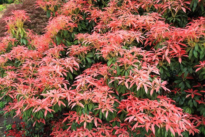 Сочетайте превосходные цвета пиериса с другой декоративной листвой, включая самую светлую, посадив рядом: