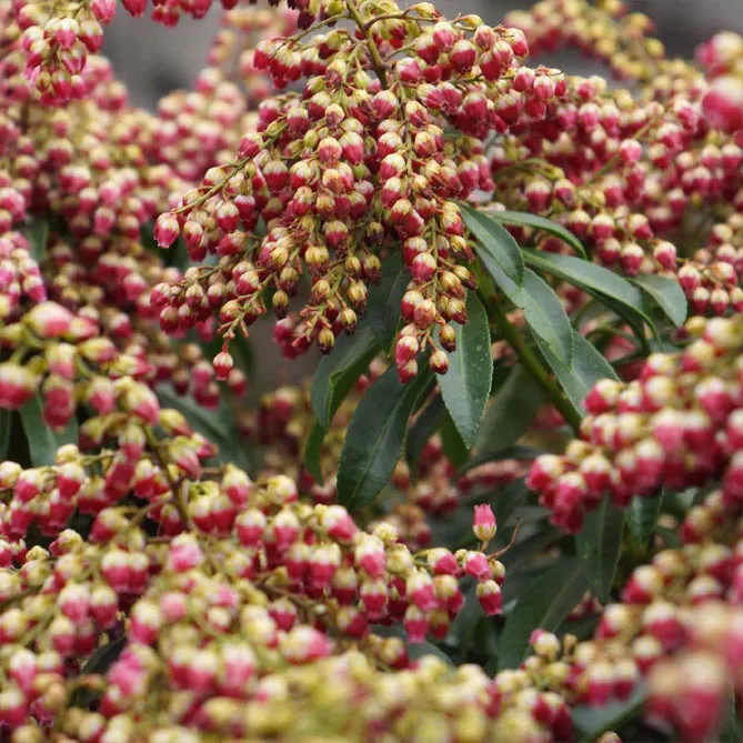 Японский пиерис выпускает цветочные бутоны осенью, они остаются на растении всю зиму, добавляя декоративности кустарнику, прежде чем ранней весной распустятся цветы.