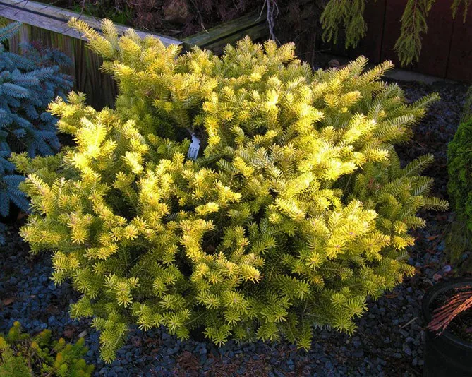 Пихта «Ауреа» (Auera) – один из самых популярных сортов с зелено-желтой хвоей. Она имеет менее правильную форму, чем Golden Glow, растет намного медленнее, чем другие пихты.