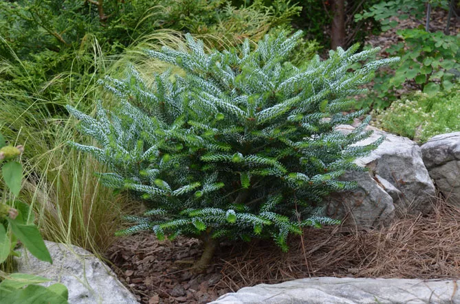 Фото. Пихта A. koreana (корейская) в ландшафтном дизайне сада