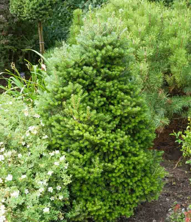 - «АйсБрэйкер» IceBreaker – сорт медленнорастущей пихты высотой 40-50 см, достигает аналогичного диаметра, вырастает всего на 3-4 см в год. Молодые побеги на начальной стадии развития имеют сочный зеленый цвет. По сравнению с темно-зеленым и серебристым цветом старых побегов молодые бутоны выглядят феноменально. Хвоя короткая, до 1,5 см длиной и 2-3 мм шириной, толстая, цилиндрическая, закручена вокруг побегов, с белой нижней стороной. Верхняя часть хвои светло-зеленая, почти незаметна. Требуется плодородная почва с умеренным увлажнением и кислой или слабокислой реакцией. Высаживаем в солнечные или полутенистые места, защищенные от ветра. Подходит для альпинариев, выращивания в контейнерах. Полностью морозоустойчивое дерево.