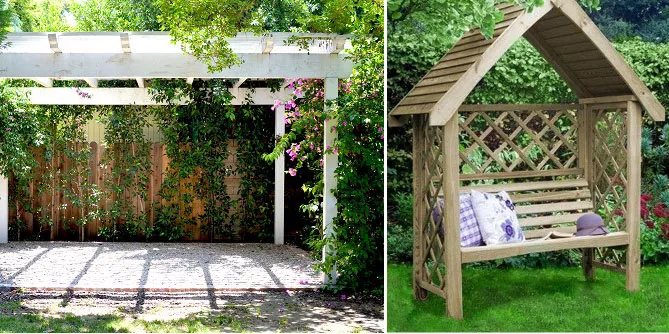 - решетками с вьющимися растениями.