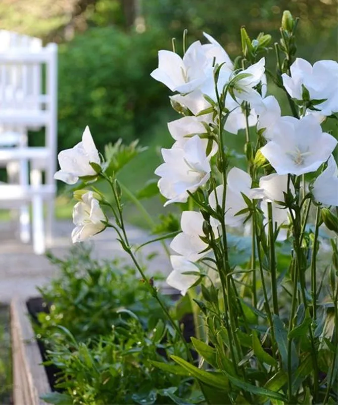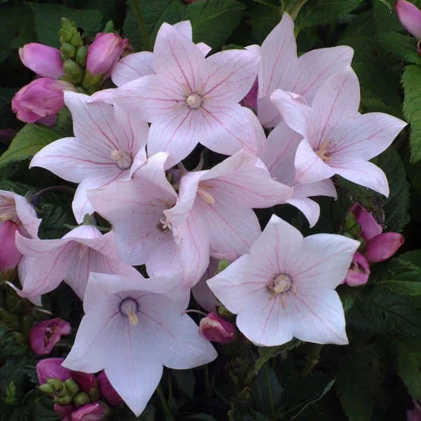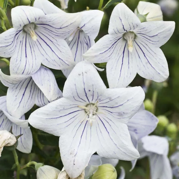 - Platycodon Albus – достигает высоты побегов 40 см, белые цветы с нежными голубыми элементами.