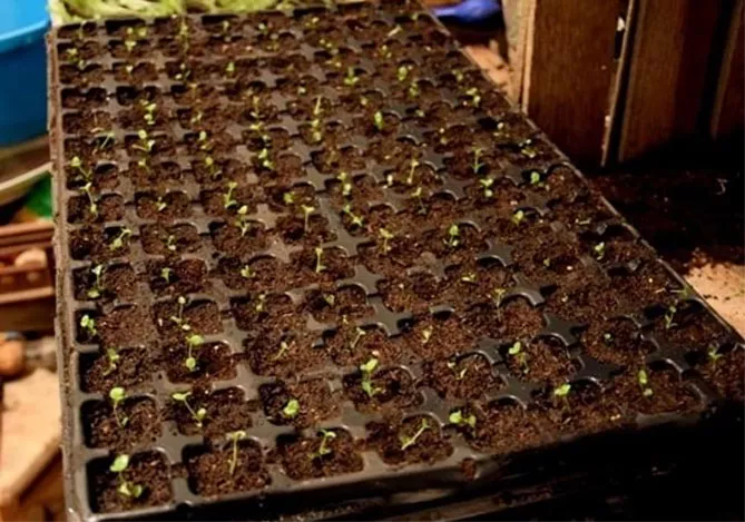 Лучше применять многоячеистые поддоны, помещая по 3-5 семечек в одну ячейку. Семена присыпают небольшим количеством вермикулита, обеспечивающего достаточную влажность. Слой вермикулита делают тонкий, семена для прорастания нуждаются в свете.