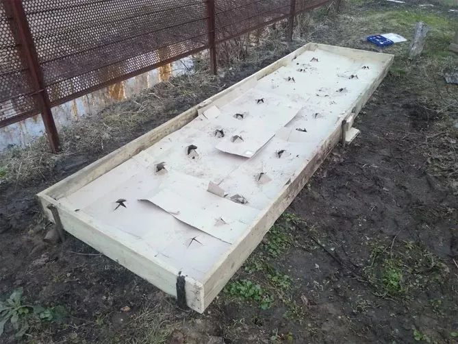 - Его покрывают картоном, не делая никаких других предварительных работ. Если почва не достаточно увлажнена, перед укладкой картона, её следует полить.