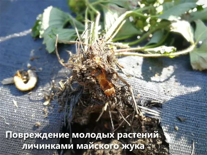 Посадка кустов клубники в почву, зараженную вредителями не сулит ничего хорошего. Корни клубники очень вкусны для личинок, и эффект от их питания очень неприятный (часто целые растения увядают и выпадают).