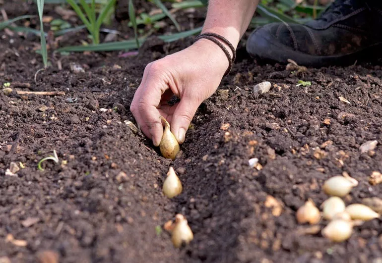 Если почва и посадочные луковицы подготовлены, можно переходить непосредственно к посадочной процедуре. Она выполняется по такому алгоритму:
