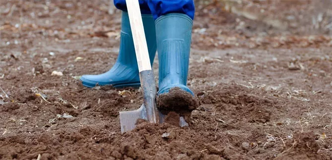- Когда яма заполнится, грунт осторожно уплотняют ногой. Подсыпают субстрат.