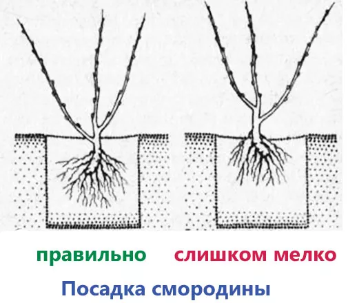 Цифры приведены для посадки черной смородины черенками. Для взрослого растения яма должна быть глубже и шире примерно на 15-20 см.