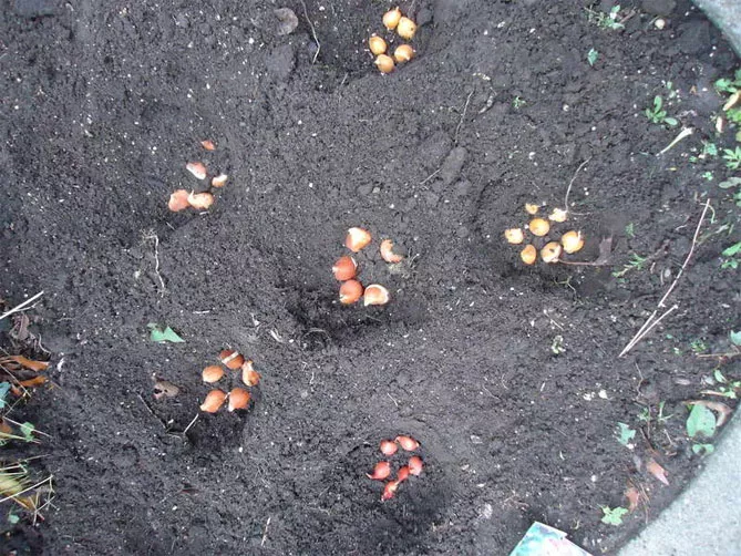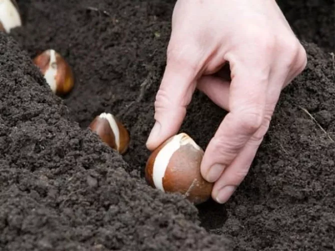 Важно правильно расположить луковицы в земле, строго вертикально, корешком вниз.