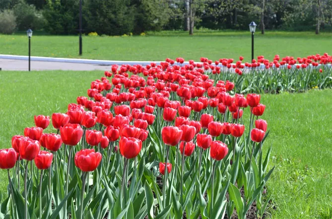 Тюльпаны сажают группами по несколько штук. Посадки должны быть близки к естественным. Они плохо смотрятся при высадке в ряды. Разноцветные тюльпаны разных сортов и гибридов с разными датами цветения выглядят живописно. Благодаря этому мы сможем наслаждаться ими с конца марта до конца мая.
