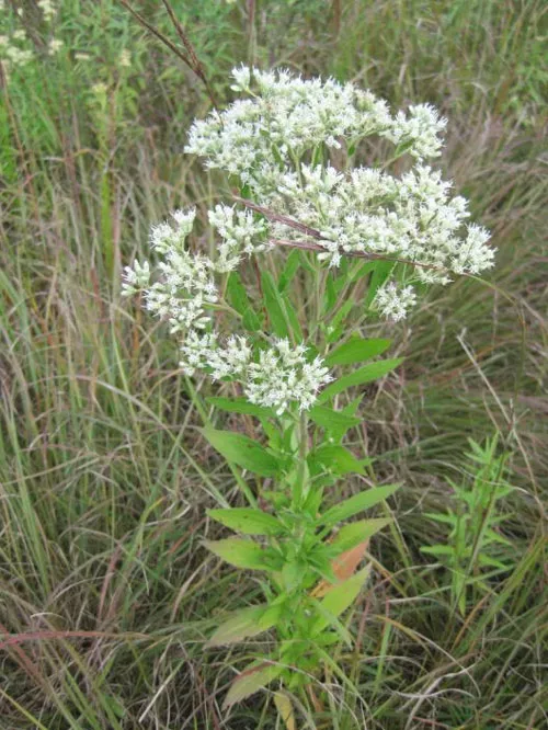 Вид посконника Eupatorium aromaticum – немного меньшее растение высотой 1,5 м и шириной 1 м. Многолетник цветет в конце лета, образуя густые белые соцветия размером до 10 см. Овальные листья (обычно длиной до 10 см) часто имеют зазубренные края. E. aromaticum – морозостойкий вид.