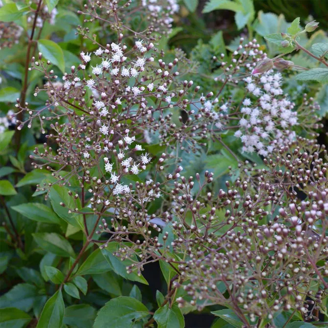 Вид Eupatorium ligustrinum – Конопляник бирючиновый – вечнозеленый кустарник с густыми веточками, достигающий значительных размеров – до 5 м в высоту и 3 м в ширину. Осенью цветет кремово-белыми или розовыми цветами, образуя ароматные соцветия диаметром 20 см. Листья эллиптические, зеленые, длиной 10 см.