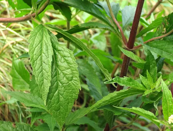Листья – темно-зеленые, супротивные, трехлистные, ланцетные, длиной 5-15 см, шириной 1-4 см, заостренные, края чаще зубчатые. Нижние листья короткочерешковые, верхние иногда сидячие, расположены по кругу по четыре.