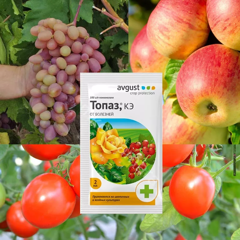 Применение препарата от болезней растений Топаз позволяет получить здоровую сельскохозяйственную продукцию, а у декоративных культур сохранить привлекательность и здоровье.