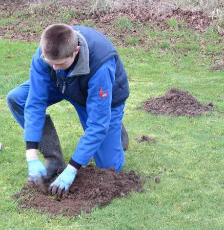 Приготовив все необходимое нужно найти на участке кротовины. Они похожи на небольшие холмики рыхлой земли. Их нужно аккуратно отодвинуть в сторону. Под ними находятся входы в норы. В них раскладывают куски ваты, пропитанные нашатырем. После этого норы аккуратно засыпают снятой землей. Применение нашатырного спирта от кротов в огороде позволит избавиться от вредителя надолго.