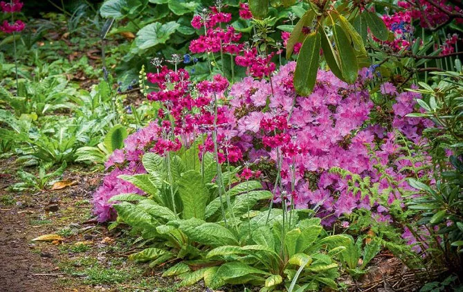 Японские первоцветы идеально подходят для полутенистых уголков сада возле деревьев и кустарников, на краю пруда.