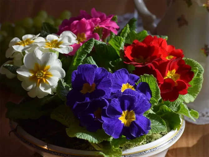 Примула выглядит очень привлекательно, высаженная в группе. Благодаря сотням сортов, можно создавать чрезвычайно красочные композиции, украшающие окна, балконы, террасы. Сезон цветения первоцветов приходится на март-апрель,иногда они цветут дольше, вплоть до лета. Розетки зеленых листьев даже после цветения выглядят привлекательно.