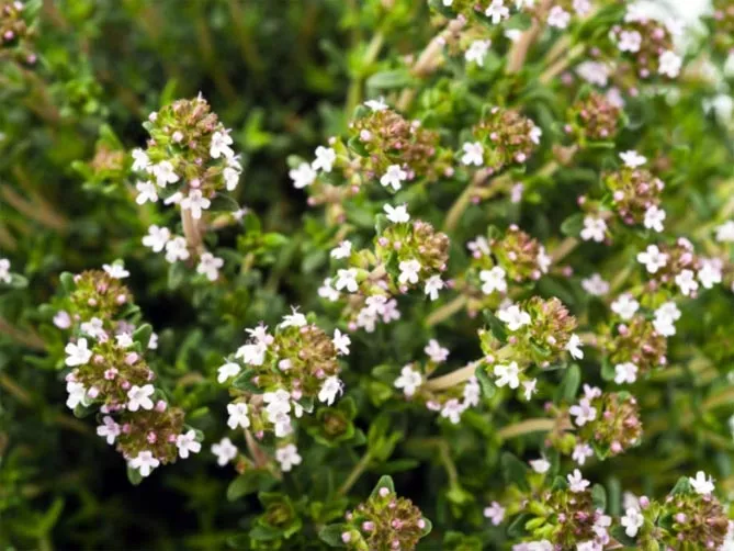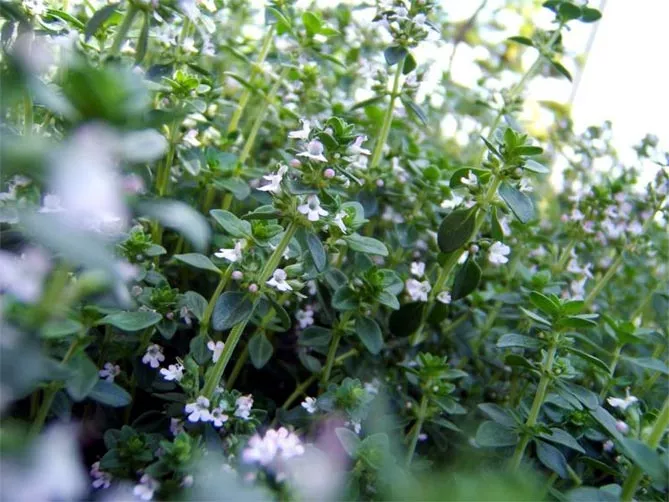 Это многолетний кустарник с жесткими побегами и узкими листьями. Сбор урожая ведут во время или незадолго до цветения. Тимьян сушат в проветриваемом месте, хранят в плотно закрытой таре, измельчая непосредственно перед использованием. Свежий тимьян очень острый, жгучий, поэтому его не рекомендуется добавлять в блюда в большом количестве.