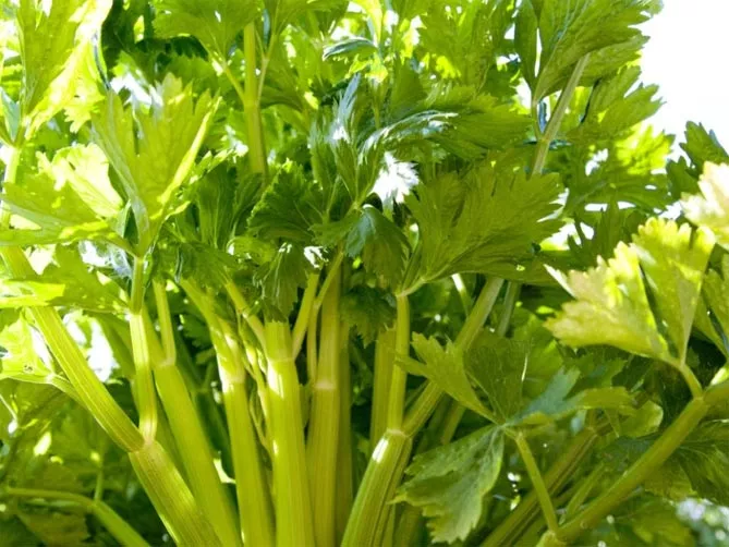 Эта двухлетняя трава, похожая на петрушку, создает розетку из светло-зеленых стеблей с зазубренными листьями. Достигает 30-40 см в высоту. Съедобная часть сельдерея представляет толстые мясистые черешки, которые едят сырыми, но также можно варить, тушить.