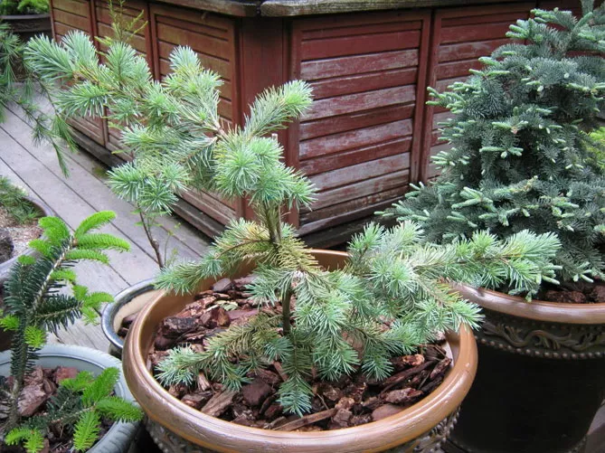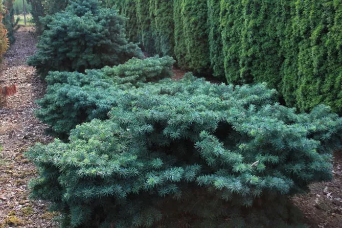 Их можно сажать среди других карликовых хвойных деревьев с раскидистым габитусом: