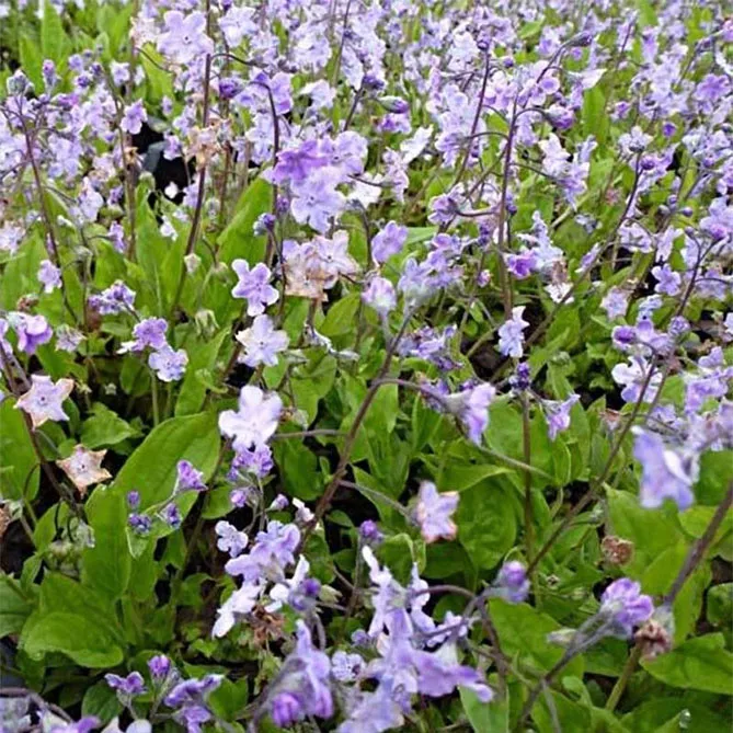 - Сорт этого вида «Лилак мист» Lilac Mist (в переводе «Сиреневый туман») достигает высоты 25 см. Бледно-сиреневые цветы этого сорта элегантно выделяются в подлеске. Листья зеленые, в форме сердца.