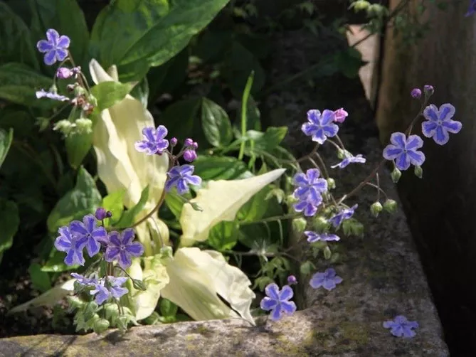 - Этот вид с его маленькими свежими голубыми цветками с белыми глазками напоминает незабудки.