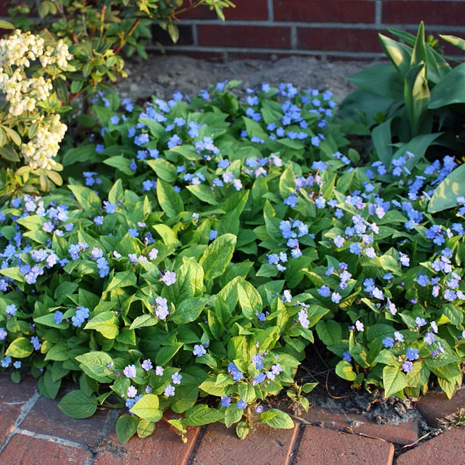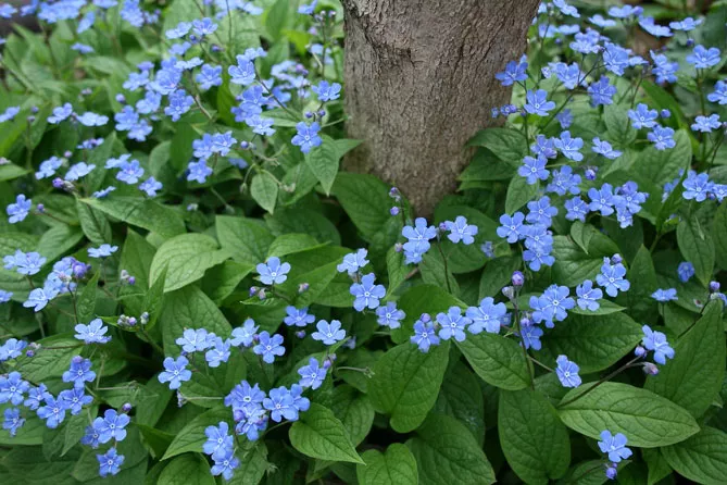 Омфалодес – превосходный почвопокровник для легкой тени, его легко выращивать и ухаживать за ним. Он не поражается болезнями, однако остерегайтесь слизней и улиток, которым нравится его листва.