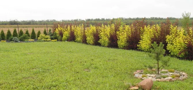 - «Сенте глоу» Center Glow – кустарник, высотой до 3 метров, привлекательный по окраске листьев, которые в молодости (на верхушке ветки) имеют ярко-желтый цвет, позже, в нижней части стебля, становятся малиновыми;