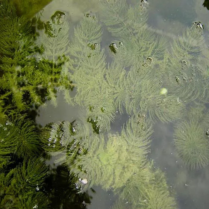 Шаровидная декоративная водоросль Кладофора шаровидная (Aegagropila linnaei) или эгагропила Линнея, ценится владельцами прудов за быстрый рост, декоративные качества и поглощение большого количества соединений азота и фосфора. Она имеет форму плотного ярко-зеленого шара диаметром до 15 см. Эти водоросли для пруда, прикрепленные к земле, корням или камням, могут расти в форме, отличной от шаровидной – тогда из них получаются красивые лужайки. Размножается делением растения на 2 новых. При посадке поместите растение на воду в пруду.