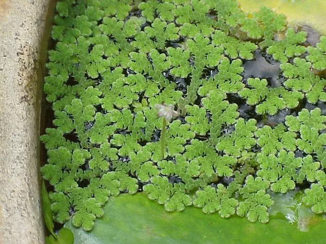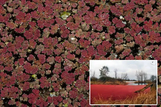 Водяной папоротник или Азолла папоротниковидная (Azolla filiculoides) является плавающим папоротником, разрастаясь, создает на поверхности воды своего рода пену, которая становится красной. Обычно рассматривается как однолетнее растение, но может зимовать в донном иле в виде спор.