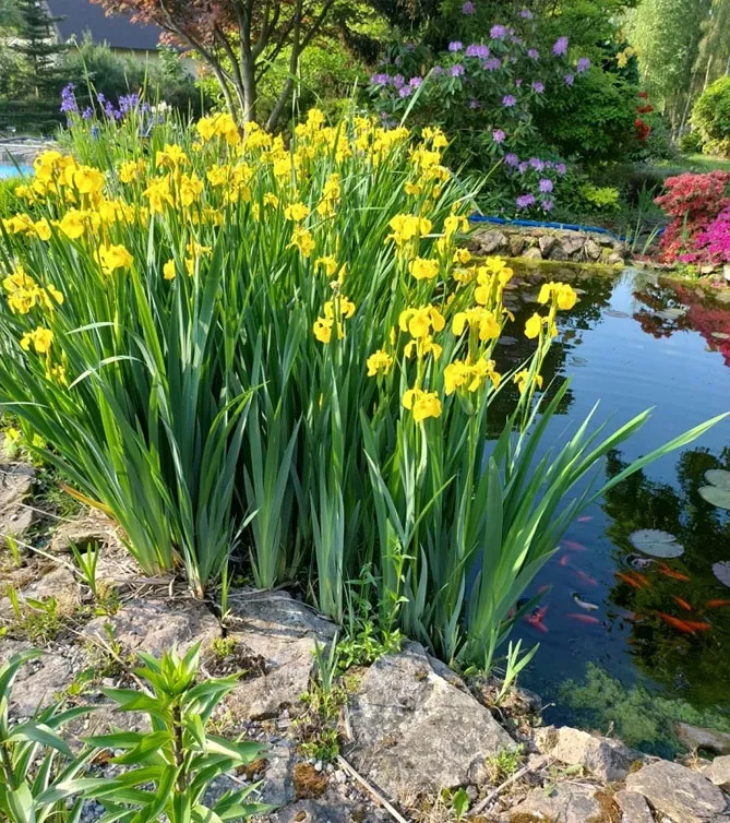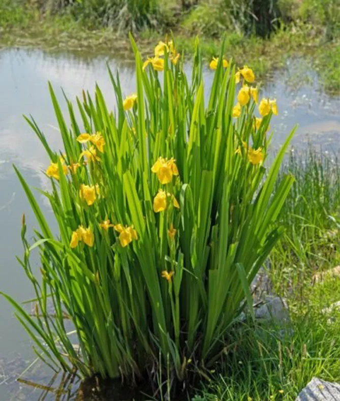 Популярный, морозостойкий вид – Ирис желтый (Iris pseudacorus), произрастает вокруг водоемов и даже влажных лугов. Он будет хорошо расти в затененных и солнечных местах. Достигает 1,5 метра в высоту. Желтый ирис цветет красивым желтым цветом в конце мая-начале июня.