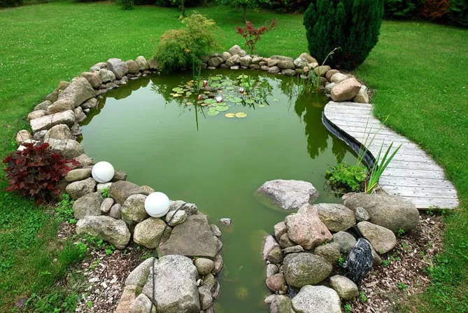 Убедитесь, что в пруду много растительности. Должно быть обеспечено разнообразие. Стоит, чтобы в пруду были водоочищающие растения, подводные и для болотной зоны. Такая посадка обеспечит их правильное развитие, позволит создать биологический баланс в пруду и обеспечит чистоту воды.