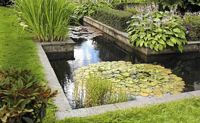 Чтобы наслаждаться красотой пруда, нужно позаботиться не только о правильном его обустройстве, но и о посадке растений. Их биологический баланс также важен. Стоит купить в садовом магазине герметичные контейнеры разных размеров. Зимой можно легко перемещать виды, чувствительные к перепадам температур, в место, которое защитит их от холода.
