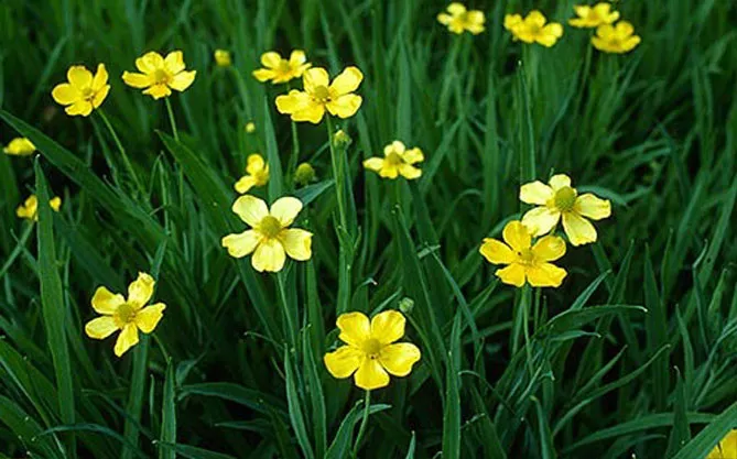 Лютик языколистный или длиннолистный (Ranunculus lingua) достигает около 1,5 метров в высоту. Его цветы крупные, интенсивного желтого цвета. Быстро разрастается, используя толстые корневища.