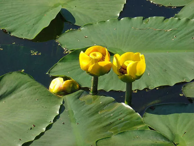 Кувшинка или кубышка желтая (Nuphar lutea) – красивое, чрезвычайно популярное растение для пруда. У него желтые цветы и большие плавающие листья. Корневище укореняется на глубине до 4-5 метров. Желтая кувшинка впитывает питательные вещества, присутствующие в воде.
