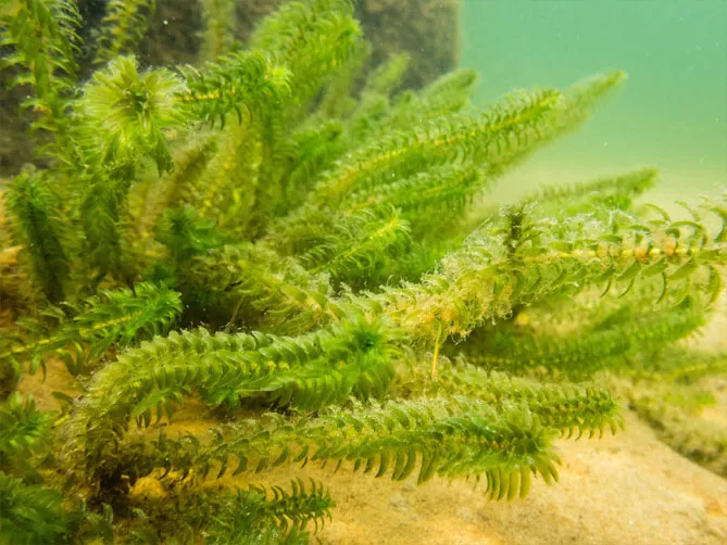 Вид подводного растения Рдест курчавый (Potamogeton crispus) имеет листья с волнистыми краями, насыщающие воду кислородом и очищающие ее от вредных химических веществ, например, нитратов. Похож на водоросли.