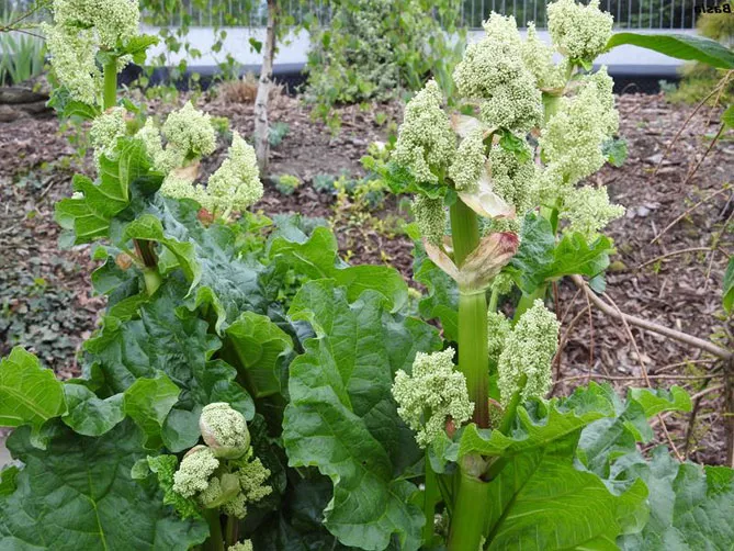 Некоторые сорта ревеня устойчивы к стеблеванию, другие – нет. Необходимо удалять появляющиеся цветоносы. Их выламывают, как только они появляются из листьев. Оставление генеративных побегов приводит к: