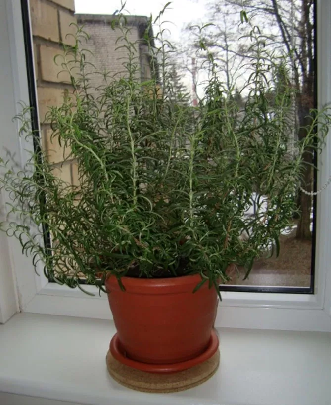 Фото. Розмарин на балконе и в комнате зимой в состоянии покоя.