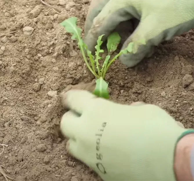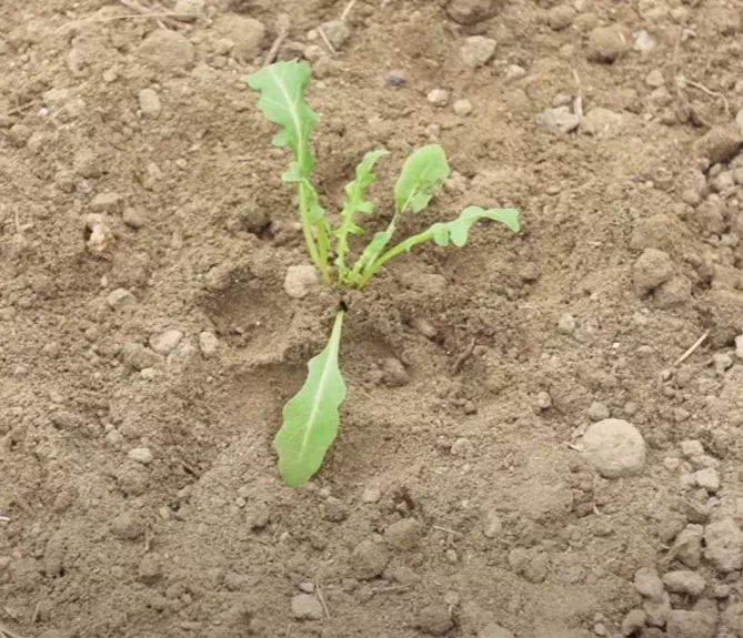 Тщательно удаляйте любые сорняки, пока их корни не переплелись с рукколой. Почву необходимо регулярно рыхлить и пропалывать. Если посев слишком густой, всходы рукколы нужно проредить с интервалом 2-3 см.