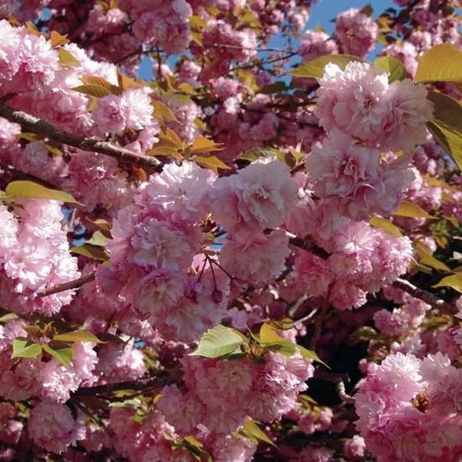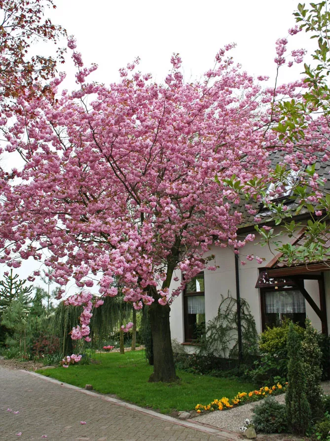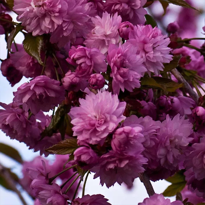 Один из самых распространенных сортов сакуры (вишни мелкопильчатой) – «Канзан» (Prunus serrulata Kanzan) цветет с апреля по май. Высота – 6 м. Дерево с вертикальной прямостоячей кроной. Весной покрывается множеством махровых цветков насыщенно-розового цвета. Молодые листья имеют привлекательный бронзовый оттенок.