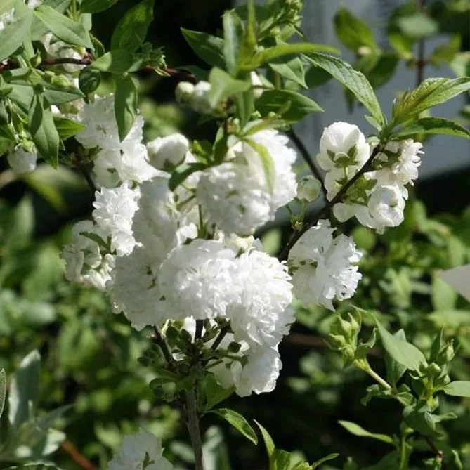 Низкорослый сорт вишни железистой «Альба Плена» (Prunus glandulosa Alba Plena) цветет в мае. Высота в зрелом возрасте – 1,5 м. Дерево в конце весны украшено элегантными, белыми, махровыми цветами. Имеет очень компактный габитус, хорошо приспосабливается к горшечной культуре. Цветки одиночные или собраны в пары.