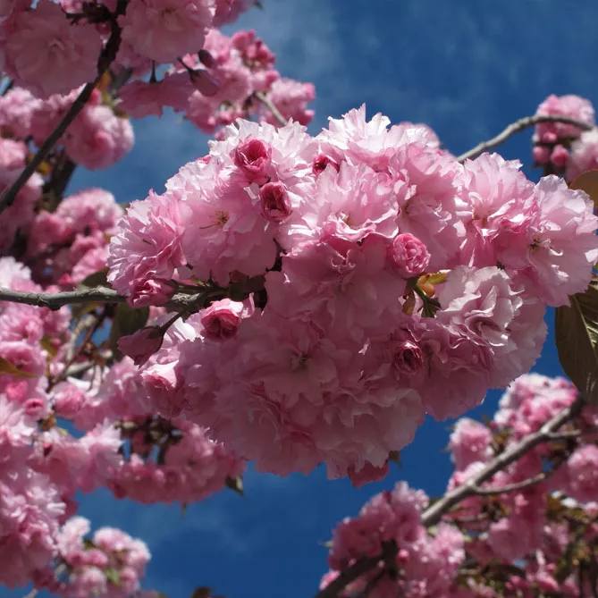 Можно комбинировать разные сорта японской вишни, чтобы наслаждаться ими дольше! Цветение довольно непродолжительное, но, комбинируя ранние и поздние сорта, можно наслаждаться их цветами в течение нескольких недель!
